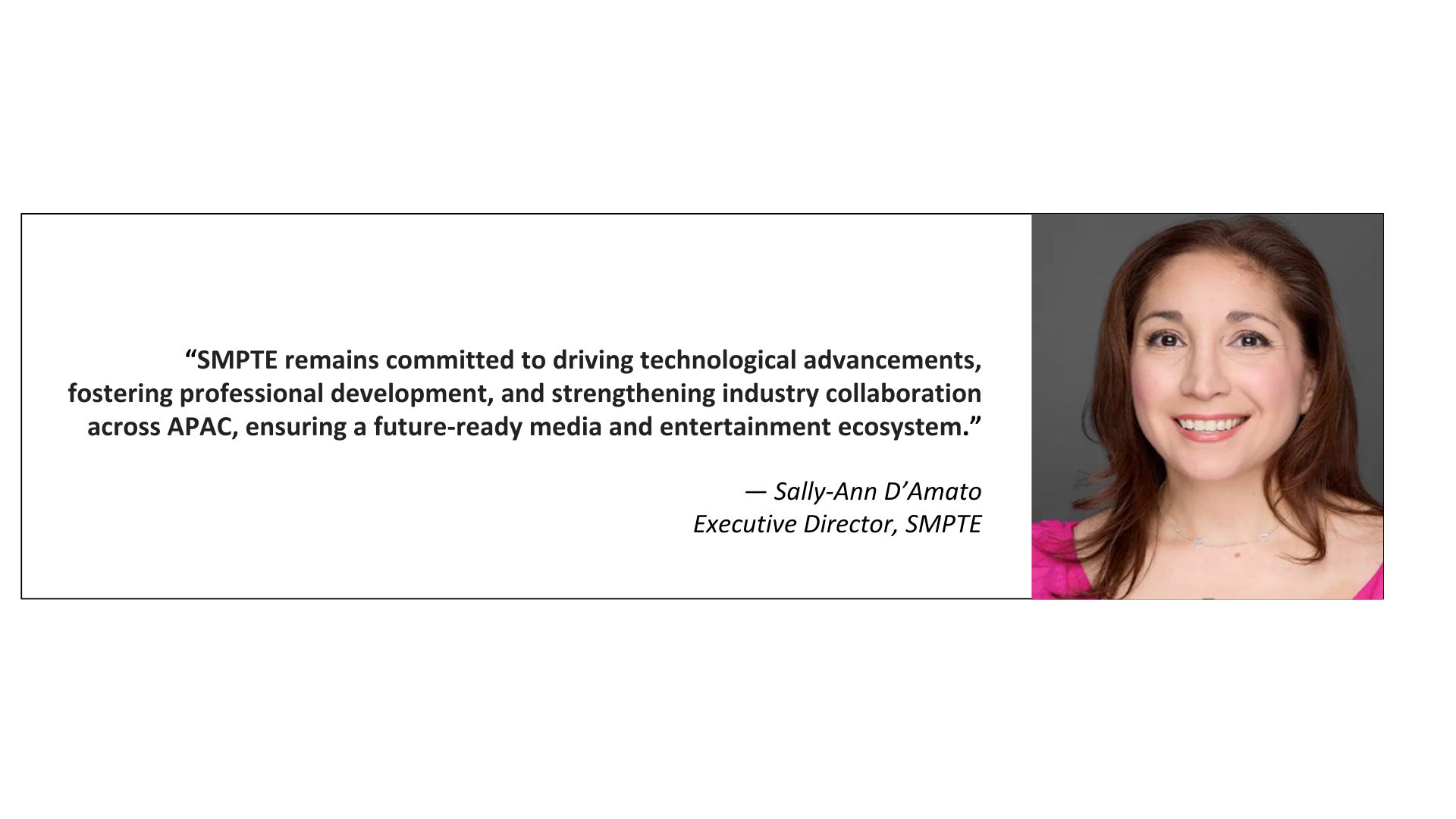 By Shaun Lim Joining the Society of Motion Picture & Television Engineers (SMPTE) in 2001 as an Administrative Assistant, Sally-Ann