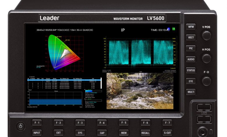 Leader’s LV5600 is a mains-powered SDI/IP waveform monitor in a half-rack width 3U desktop chassis with an HD resolution 7-inch colour touchscreen complemented by dedicated menu control buttons. It can be configured with all the facilities needed to monitor UHD/HD/SD-SDI as well as video-over-IP signals seamlessly in a hybrid operating environment.